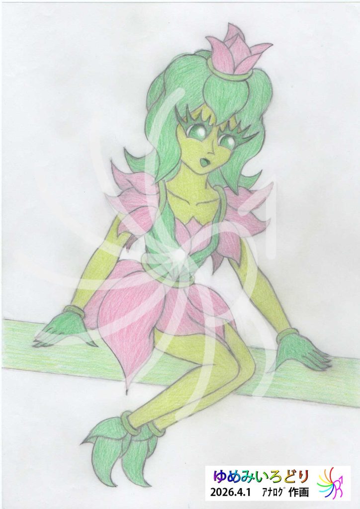 私が描いたオリジナルキャラクターで、紙と色鉛筆を使用したアナログ作画です。