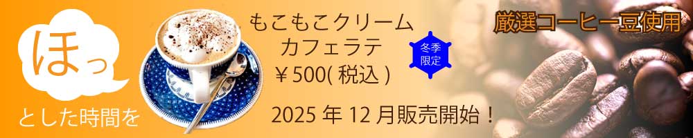 コーヒ豆の画像と文字を入れて、豆にこだわったカフェラテであることをアピール。